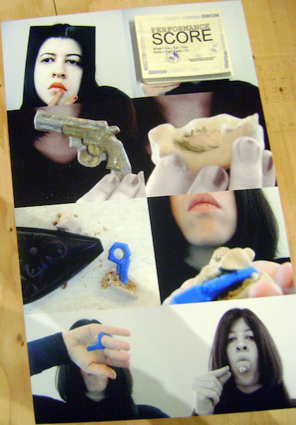 BA: As performances de hoje são feitas tendo em conta a realidade social actual. Estamos numa época de contaminações, quando tudo é alterado e tudo é mostrado, repetido e que poderá ser canibalizado. Mais do que nunca o “Manifesto Antropófago” de Oswald de Andrade foi tão verdadeiro. Os gestos artísticos em público passaram a ser muitas vezes transformados numa forma particular de intervenção, introduzindo uma dimensão política no trabalho. Mais recentemente nos anos 70, Carolee Schneemanm é um dos exemplos de performer que utiliza o corpo para escrever. Em “Up to and Including Her Limits”, esteve suspensa no teto e teve um conjunto de folhas de papel presas na parede, enquanto escrevia com o corpo em movimento descrevendo a vida privada da artista, tornando-a pública. Esta peça é um exemplo dessa passagem da improvisação ao amor.