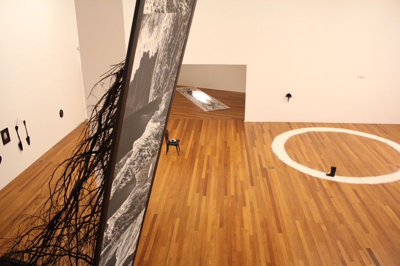 Alvoro é o nome da exposição de António Barros presente no Mudas - Museu de Arte Contemporânea da Madeira, até 31 de maio. Tendo a palavra tanta força na sua produção artística, o título é revelador da mensagem fulcral que esta obra recente acarreta. (Ou não?) Caminhamos por uma "floresta" morta de galhos virados ao solo, círculos e limites, embarcação com um vulto pousada em tapete grafado com um frame, fora do espaço marítimo a que pertence, inanimada num museu sem possibilidade da viagem, nem para quem se pretende transportar pelo Rio do Esquecimento a não ser pelo imaginário veloz, asas de anjos ou sfumatos, as figuras religiosas desfocadas e pás que tudo desenterram, penduradas, tudo fora do contexto, a cadeira vazia sustentada por colheres antes dos pratos vazios, tudo negro.