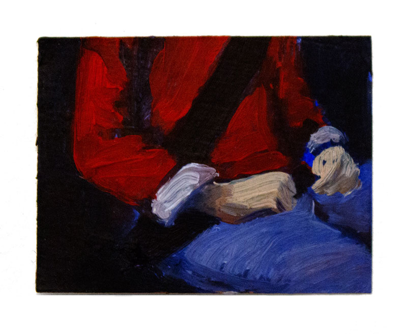 BC: As pinturas de pequenas dimensões, maioritariamente figurativas, parecem fixar-se numa fase de determinada ação e que, a partir de uma lógica linear ou sequencial, permitem ao espectador prever tanto o momento imediatamente anterior, quanto o seguinte. Pinturas, portanto, que refletem uma continuidade, como se de um fotograma se tratasse.