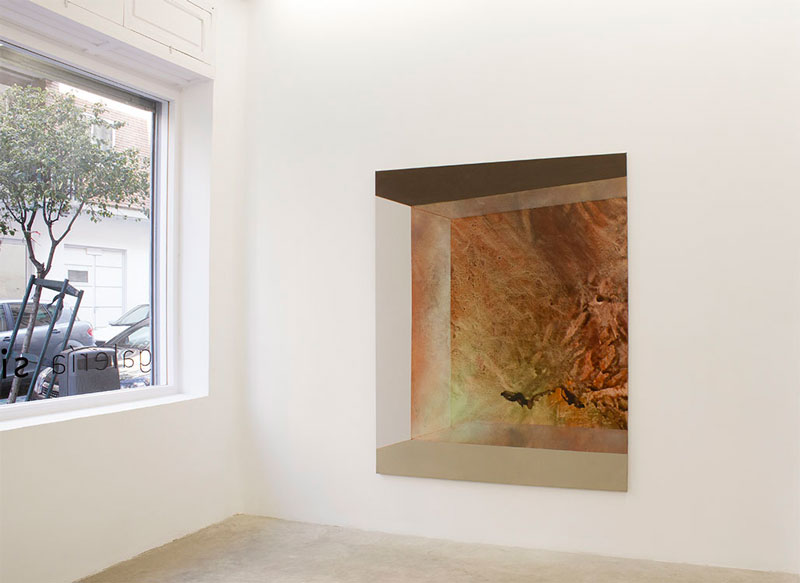 LJ: Na exposição: Podemos sempre fugir de carro, as pinturas pequenas ficaram todas juntas, em linha, no início da exposição – à direita, e as pinturas grandes relacionaram-se com o resto do espaço expositivo e entre si. Na exposição atual, em Madrid, o Sérgio Fazenda Rodrigues e eu optámos por dividir as pinturas pequenas em dois núcleos (também respondendo às características espaciais da galeria) e colocámo-las abaixo no nível normal, tendo o observador de se baixar para realmente as conseguir ver. A ideia de ter um trabalho quase insignificante, que só é visto por quem quiser mesmo, que não se imponha de forma alguma, sempre me agradou e penso que nesta exposição talvez tenha conseguido concretizar essa ideia melhor. As pinturas grandes são acompanhadas por estas quase notas de rodapé, que as contrariam e simultaneamente complementam.