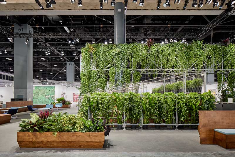 SP: Há dois anos, quando visitei a Art Basel em Miami, fui agradavelmente surpreendido com uma espécie de ilhas com relva e oliveiras, espalhadas pelo espaço e corredores da feira. Recordo-me perfeitamente, e após deambular por mais de três horas no espaço particularmente inundado de visitantes, que me deitei num destes minijardins e recarreguei as energias que começavam a escassear. Naturalmente que esta solução não é um acaso e provavelmente é um exemplo das soluções que está a referir (…)