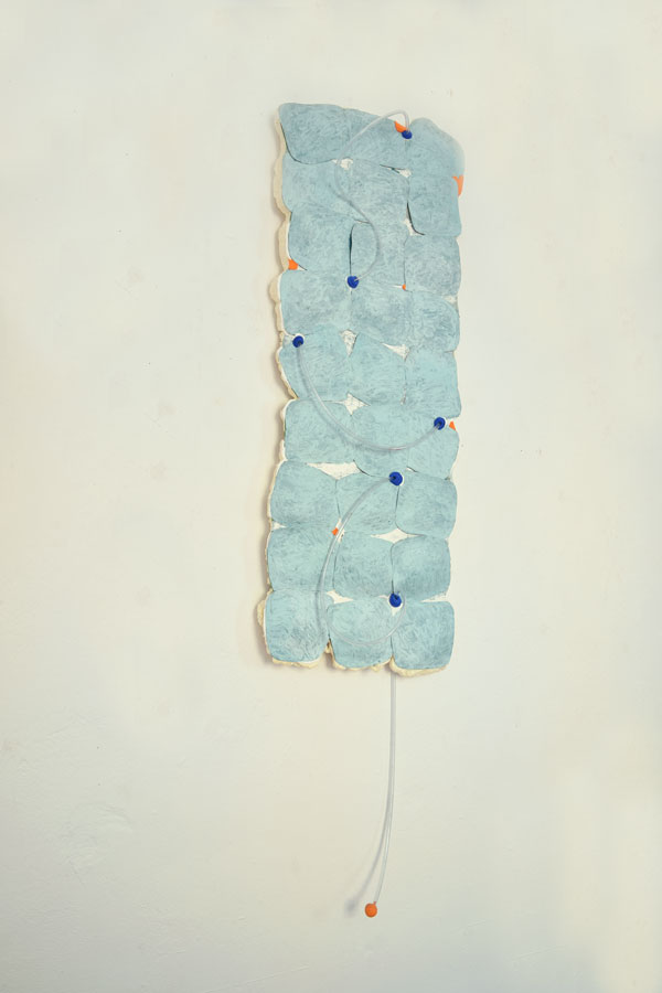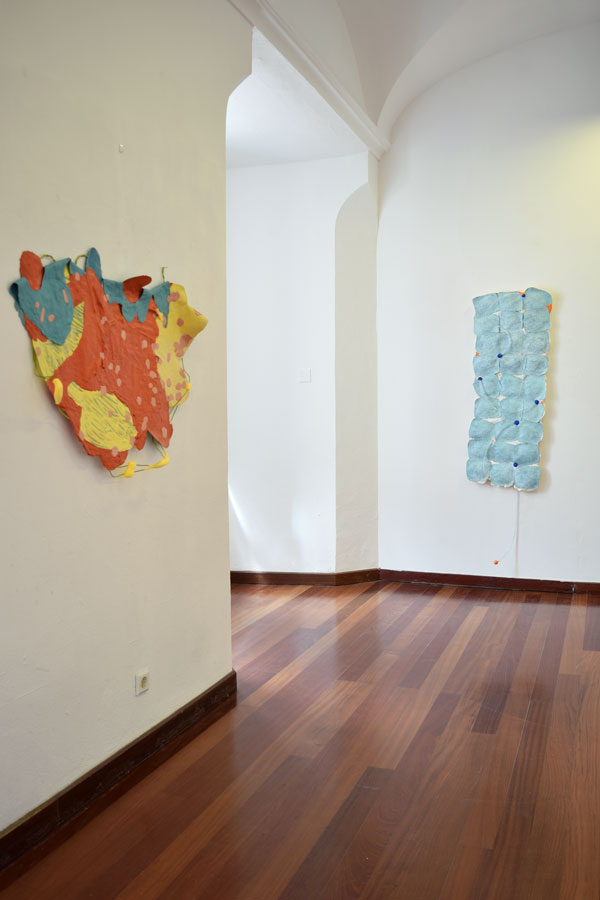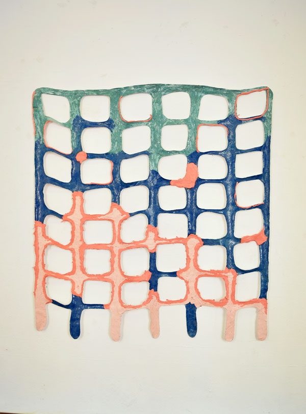 JAT: Tenho vindo a aperceber-me de que há um grupo de materiais sobre os quais o meu interesse recai, e que são recorrentes na minha prática, como é o caso da borracha acrílica. É um dos meus materiais favoritos - adoro-a! - porque, para além de ser impermeabilizante, é extremamente pastosa e tem um branco horrível. Esses grupos de materiais vão-se agrupando de tempos a tempos, fazendo pequenos núcleos que passo a explorar. Ao princípio são materiais que não conheço mas que me apelam, por alguma componente matérica, ou mesmo pela sua utilidade. Gosto muito deste tipo de particularidades das coisas que são úteis. A forma como os vou utilizando é muitas vezes ingénua, diria, no sentido em que o que me acaba por me interessar é perceber até onde é que podem ir, não obedecendo aos procedimentos correctos, ou tentando torná-los materiais de pintura quando não o são. Foi a partir do momento que eu compreendi que estes grupos de materiais me interessavam, e me esforcei por fazer deles um veículo para a pintura, que o meu trabalho passou a deixar de ser pintura, num sentido clássico. Ou continuou a ser pintura, mas deixou de estar tão preso a uma ideia de plano, e passou a ter volume, muitas vezes remetendo para um universo decorativo. E ficaram mais frágeis, o que me interessa muito também. Quando faço estes grupos de materiais acabo por me restringir bastante a eles, e é de uma maneira intuitiva que vou avançando no seu estudo, não sem alguma ingenuidade, porque é sempre a tentar que tudo dê um bocadinho mais de si.