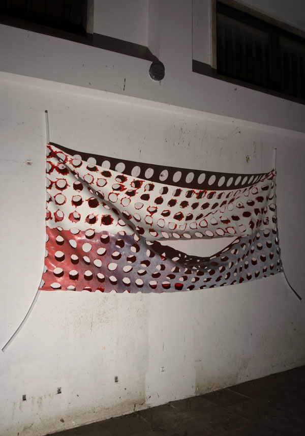 CR: Há uma diferença, sobretudo nas palavras, e para mim acentuada, quando usamos a palavra formal e a palavra decoração, ou decorativo. O decorativo seria uma repetição que se esgota, qualquer coisa que aplicas e é desnecessária. Percebo o uso da palavra decorativo quando fazes uso de alguns padrões que são recorrentes, mas mesmo quanto ao que dizias de encontrar uma série de materiais, e de lhes esgotares as possibilidades, numa esquizofrénica relação para-científica, para mim não me parece um processo nada decorativo mas de compromisso com uma exploração formal.