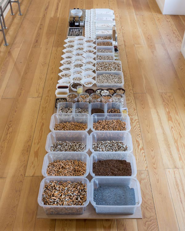 JL: O meu atelier é um espaço sagrado de liberdade absoluta e só cá entra quem eu decidir convidar. Quanto ao resto, não tenho paciência para fundamentalismos! O antitabagismo em si é um movimento a que estou atento, por motivos óbvios, mas não me interessa particularmente, mesmo porque decidir ou não fumar é, e será sempre um ato de liberdade individual, como decidir comer chocolates ou beber café em vez de chá. Isso terá sempre de ser respeitado por muito que teimem em se opor. Uma coisa é haver legislação e proibições em espaços públicos, o que compreendo e aceito, outra coisa é o meu espaço privado e qualquer tentativa de ingerência na minha liberdade de escolha individual é absolutamente necessário resistir. Seria mais lógico simplesmente proibir a produção e venda de tabaco, mas isso nunca irá funcionar, há demasiado dinheiro em jogo neste negócio. Eu pela minha parte já planto as minhas próprias plantas de tabaco e espero um dia que deixe os cigarros só fumar cachimbo das plantas que cultivo. Evidentemente que acho horrível o descartar de filtros no espaço público e vejo essa ação irresponsável simultaneamente como uma metáfora e uma realidade concreta do modo como nos relacionamos e desrespeitamos o meio ambiente. Se não apago os meus cigarros no chão da minha casa e atiro as beatas para a sala, porque o farei na rua, na praia, no meu planeta? Os maus hábitos, como as mentalidades, são muito difíceis de se mudar, mas é possível e cada vez mais os fumadores têm consciência destes.