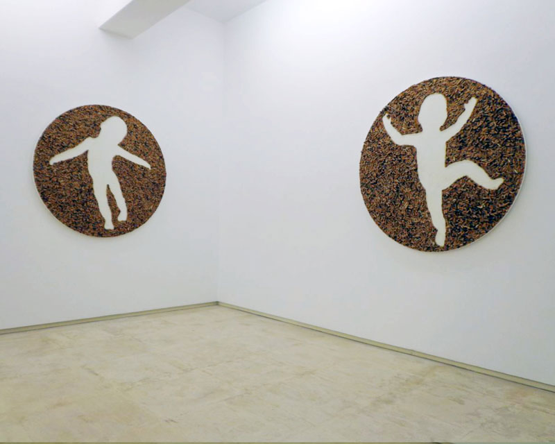 JL: Quando levantaste a questão da transferência do sentimento de repúdio para o corpo do próprio espectador lembrei-me desta questão. De facto, há alguns trabalhos cuja componente olfativa faz parte essencial das peças, a mesa por exemplo, e aquelas peças circulares com as figuras dos bebés, Flying Angel / Falling Angel, 2013, e o The fall, 2013. Mas sou criterioso no uso do cheiro. Acho que funciona bem quando as peças estão totalmente isoladas, seja por camadas de cola ou verniz, ou isoladas em caixas de acrílico. O que acontece então é que a pessoa “imagina” o cheiro e nessa projeção pode haver ainda mais nojo ou repúdio. De certo modo estou a manipular as expectativas do público e isso interessa-me.