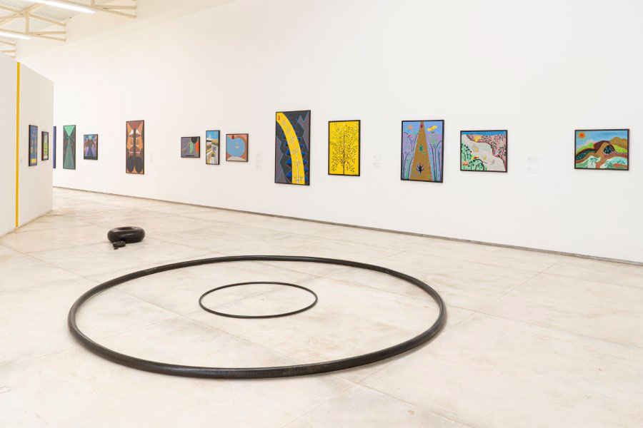 Douglas de Freitas / Instituto Inhotim: Pensamos em ocupar a galeria Mata porque ela fica na área mais antiga do Inhotim. É a primeira galeria temporária do Instituto, localizada ao lado da galeria True Rouge do Tunga, primeira galeria dedicada a um artista no Inhotim. Da galeria Mata, através de uma abertura de vidro, é possível ver o True Rouge. Além da relação com a natureza e, consequentemente, com os Orixás, que são a própria natureza, pensamos também na relação entre os artistas que se materializaria naquele espaço, além da questão simbólica de ocupar as galerias que fundaram a história do Inhotim.