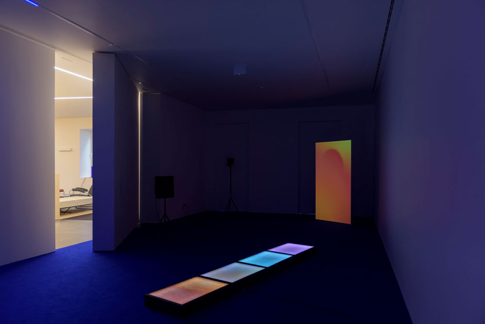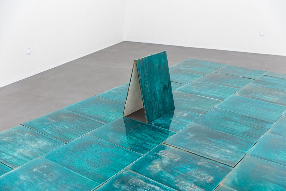 Daí que tivéssemos conferenciado com a artista a possibilidade de termos uma parede pintada de cor clara, a fim de destacar os 4 elementos dos “Corpos de Água”.