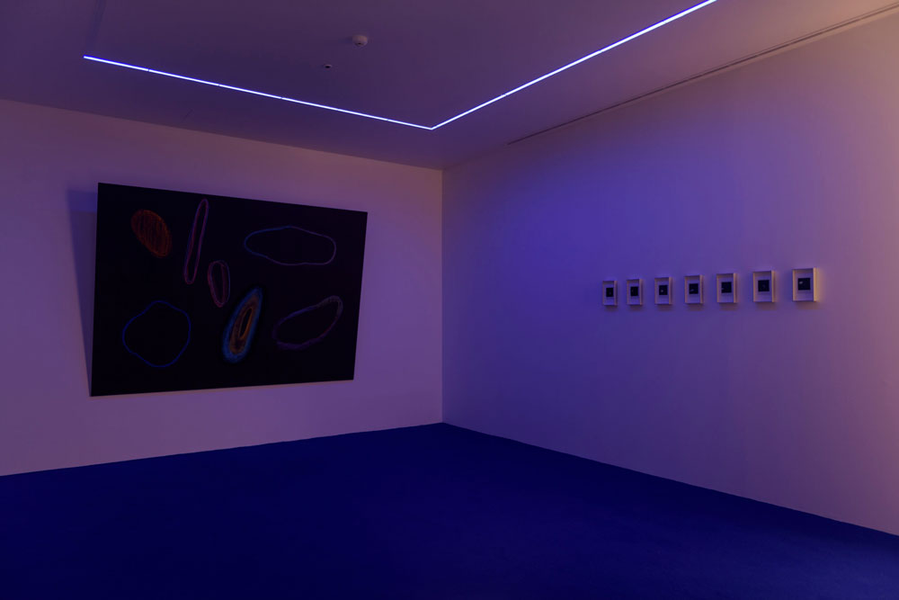 No caso específico deste projecto, identificámos um problema com os desenhos muito delicados da série “Corpos de Água”, da artista Beatriz Brum (São Miguel, 1993). Os desenhos foram emoldurados em caixas de acrílico e esta opção teve em conta potenciar a fluidez entre eles. Porém, numa parede branca, seriam quase invisíveis.