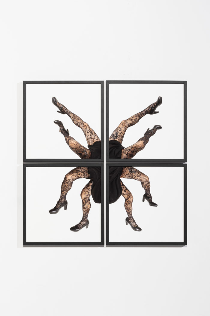 Compus, assim, alguns alfabetos enormes impressos em papel para criar stop motion manual e, então, culpado por produzir tanto lixo, fiz uma escultura em papel machê em que apliquei todas as impressões em papel dos corpos isolados, que já se apresentavam disformes em silhuetas, mas que, reunidos na escultura, davam corpo a uma forma tridimensional totalmente distinta daquela da qual procederam. Assim, fui descobrindo os objetos completamente dissociados de performances, produzindo várias e obsessivas composições de pernas adornadas em meias e saltos altos, mantendo as provocações insolentes, subversivas e lascivas por que sempre tive apreço.