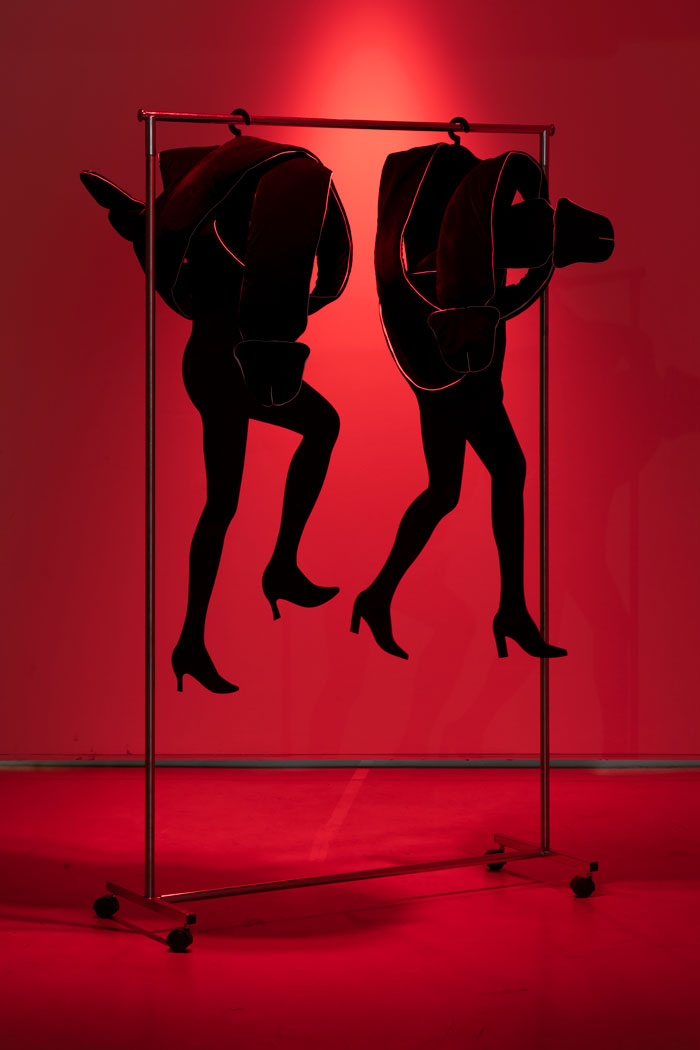 DL: Sua obra se tece principalmente ao redor de investigações sobre o corpo, o desenho, a escultura e a indumentária. Como os estudos de gênero afetam as suas criações visuais e performáticas?