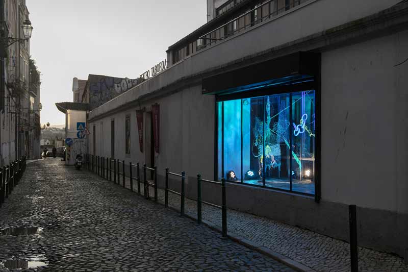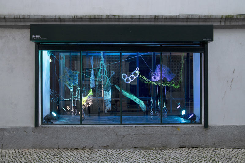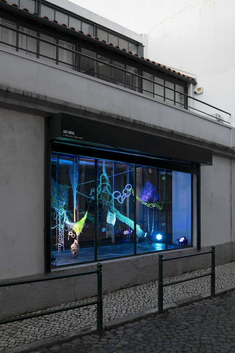 UMBRAL: O jogo entre uma vitrine desativada que pode funcionar como galeria (através das visitas no interior) assim como a possibilidade de esta se transformar numa intervenção de espaço público (através da vista do exterior) — a possibilidade de se ver a cidade pelas transparências das janelas, e a possibilidade de se pensar um lugar “suspenso” procurando concepções com a sua história, passado, presente e futuro, explorando possibilidade de (trans)mutabilidade de lugares e de hackeamento de sistemas. O processo para atingir este fim acabou por ser bastante intuitivo e desconstruído, como é a própria premissa da UMBRAL — a possibilidade de uma instalação “fixa” numa vitrine “suspensa no tempo” que naturalmente através dos reflexos — jogos de luz nas peças, reflexos no vidro, intensidade da luz natural torna-se possível devido ao efeito “aquariano” de que falas, e que também deu a engrenagem para o próprio pensamento do projeto. A própria instalação não terminou aqui, a sua contínua existência no espaço virtual perpetuou e continua a perpetuar a UMBRAL entre diferentes fluxos, perspectivas e acima de tudo portais para potências de pensamento e experimento.