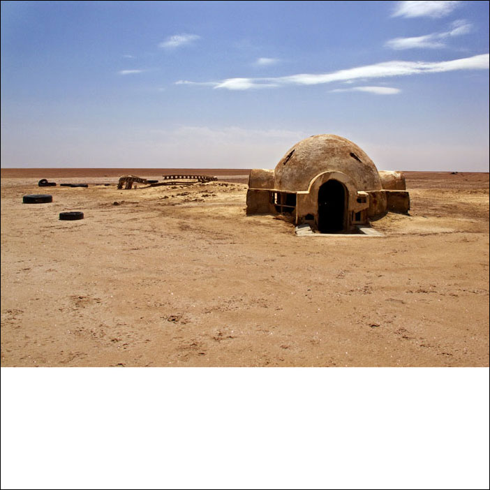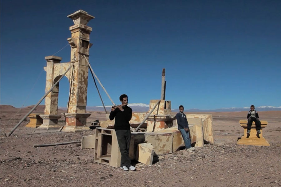 LF: Entre os teus primeiros projectos uma série fotográfica, No More Stars (2010-2011), realizada na Tunísia nos desertos de sal de Chott el-Gharsa e Chott el-Jérid onde nos anos setenta George Lucas filmou algumas das cenas de Guerras das Estrelas. A seguir realizaste o filme Copies récentes de paysages anciens / Petite histoire des plateaux abandonnés (2012), em Marrocos. Nestes trabalhos dás-nos a ver estruturas alienígenas, falsas torres de vigia, catapultas, adereços abandonados de cenários cinematográficos que se destacam na aridez do deserto. Trata-se de um exemplo acidental de Land Art ou apenas de ruínas contemporâneas, uma nova paisagem onde o Atlas passou a ser o antigo Egipto, agora já reduzido em ruínas.