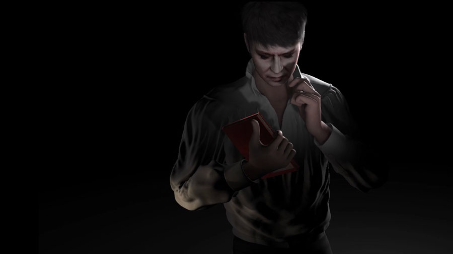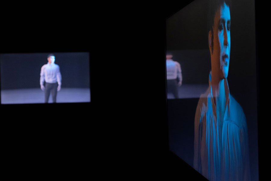 No ano passado fiz mais um trabalho em animação digital, sobre Carmelo Bene (1937-2002), a instalação com o título Là dove muore, canta (2022). O Museu Castro Mediano de Lecce, que tinha acabado de adquirir o espólio de Carmelo Bene, convidou-me a trabalhar sobre o enorme arquivo, composto por vídeo, áudio, fotografias, manuscritos e cerca de seis mil livros da sua biblioteca pessoal. Comecei a pesquisa entre caixas e caixas de material, encontrei dois cadernos de notas com textos e partes do argumento de um espectáculo que Carmelo Bene queria realizar em 1981 e que não chegou a acontecer. Era sobre Drácula, a que ele chamava muito simplesmente de “Il vampiro”. Em animação digital criei uma contrafigura de Carmelo Bene que, lendo estes cadernos de notas, volta a dar vida ao arquivo. Só pela animação digital é que o podia fazer. A voz é de um excelente actor que se aproxima da inesquecível voz de Carmelo Bene de uma forma impressionante. É uma instalação em cinco canais, uma das figuras fala, as outras movimentam-se, alternadamente.