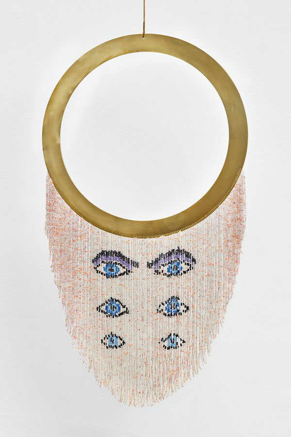 FR: Os olhos apareceram pela primeira vez na série Hologramas, na qual reinterpreto os olhos das máscaras representativas de diferentes celebrações andinas que se usaram como fundo para fotografias de moda. Nestas imagens, protagonizadas por modelos que representam o estereótipo da beleza ocidental, as tradições e as pessoas que as praticam são retratadas como elementos decorativos intercambiáveis. A série procura remover elementos do fundo destas imagens, dar-lhes protagonismo, e assim reverter a hierarquia imposta nas fotografias. Ejercicios de resistencia contrapõe a estética da alta costura europeia com alguns símbolos relacionados com manifestações de resistência. Aí reaparecem os olhos das máscaras, de maneira mais sintética e abstracta. Acontece frequentemente no meu trabalho que símbolos que inicialmente tinham um propósito claro e específico, se repetem, se transformam e adquirem diversos significados.