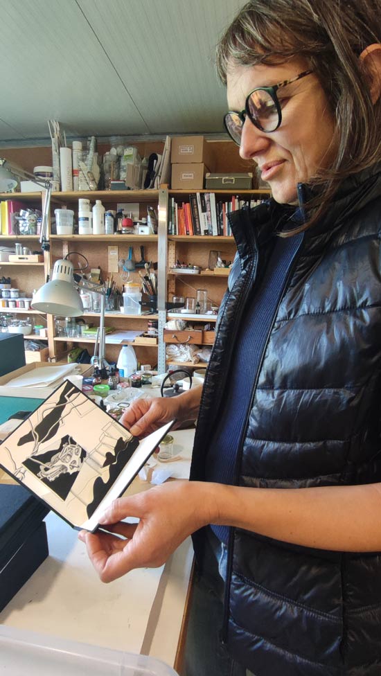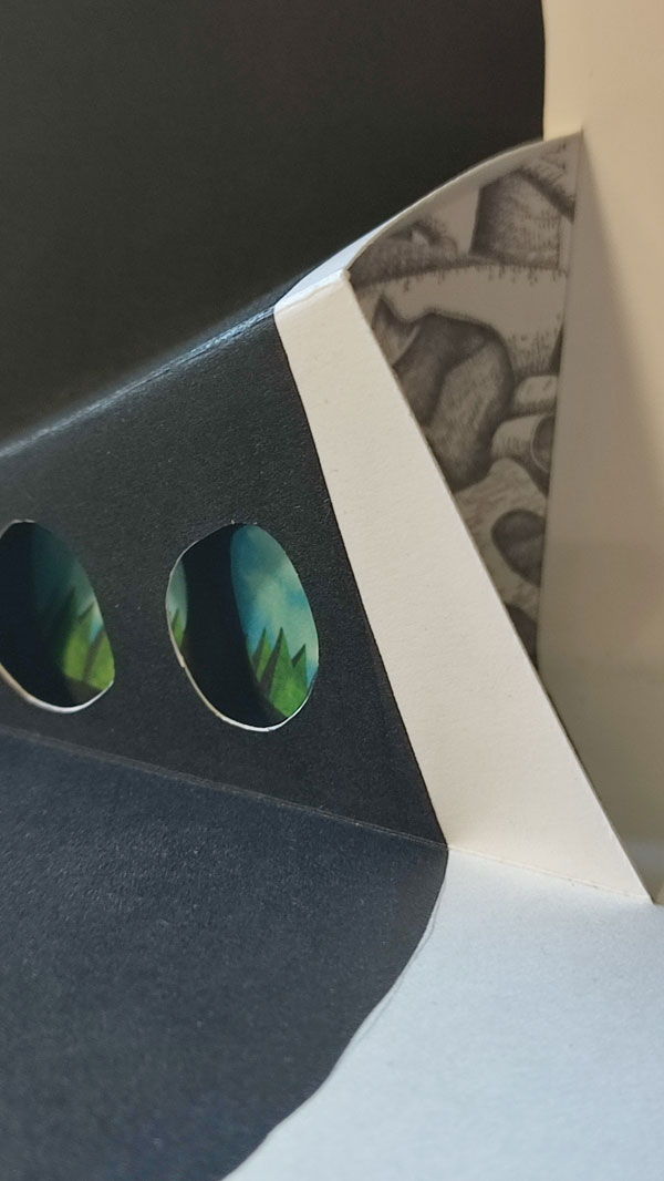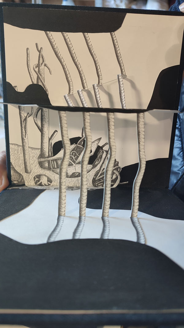 Ainda em Nova Iorque, onde viveu entre 1994 e 2010, Catarina desenvolveu projetos onde a bi- e a tridimensionalidade dialogam entre si, quer fosse em formato livro ou em instalações e esculturas. No tempo da sua residência no Centre for the Book Arts em 2007, elaborou uma série de livros pop-up intitulada Uplift onde uma atmosfera de colapso ambiental é percetível. Situações a preto e branco onde o papel é simultaneamente suporte e cenografia tridimensional, carros são emaranhados por troncos de árvores e a vista de quem maneja o livro é obstruída por ramos. Este tom sóbrio do preto e branco faz-me sentir que estou a presenciar um documentário sobre algo que já se passou, no entanto, a complexidade dos elementos pop, trazem uma leveza desconcertante às cenas. Noutro plano do livro - que não é plano – um pouco de cor, nomeadamente uma floresta, vislumbra-se; mas somente através de binoculares, como se de janelas se tratassem; e porque janelas existem em paredes, um obstáculo ao seu acesso se anuncia.