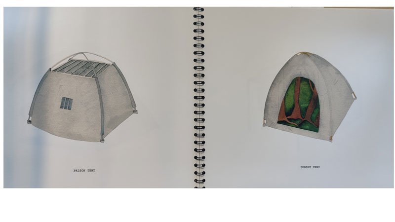 Por outro lado, o seu trabalho escultórico também integra elementos gráficos, quer sejam desenhos ou planos cromáticos, como é o caso das tendas que elaborou intituladas Artificial Retreat Devices em 2001: ‘é uma instalação constituída por uma série de tendas portáteis, utilizadas para tranquilizar o desejo de escapar ao meio urbano. (...) Assim que se entre neles, proporcionam um espaço de refúgio (retiro, isolamento). O ambiente cromático e sonoro de cada tenda evoca diferentes associações com a natureza, permitindo que o espectador se sinta noutro lugar.’ [2]