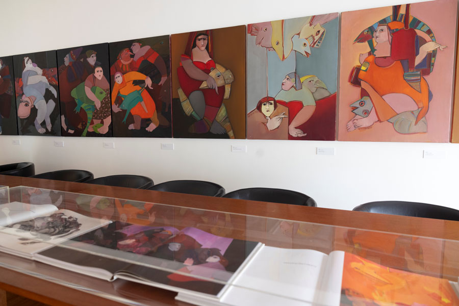 FP: Mais de quatro dezenas de obras. O critério de montagem de exposição foi o que eu aprendi, desde pequena, ao ver a minha Mãe a montar as suas exposições.