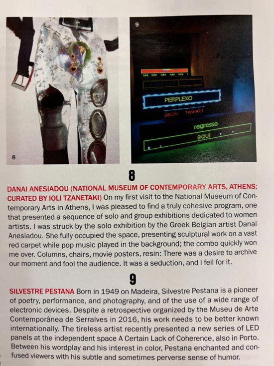 Também para surpresa minha, o meu trabalho figura aí por iniciativa de um crítico brasileiro que considerou a minha exposição de Leds importante e que é a reflexão de quem pensa como intelectual e como vê o mundo.