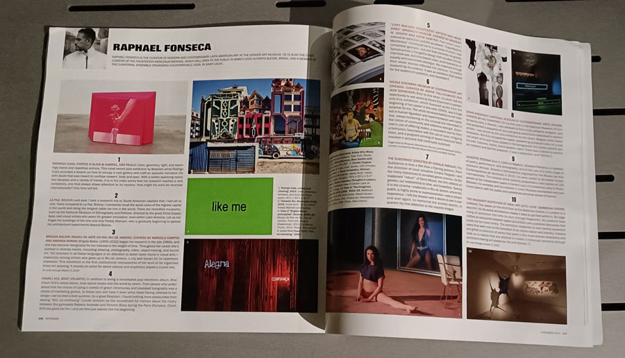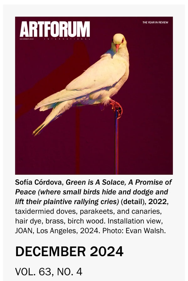 O número da ArtForum de dezembro de 2024, tem na capa UMA POMBA (sabendo que um FALCÃO vai voar de novo em Breve)!
