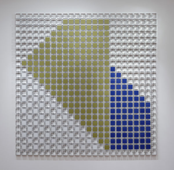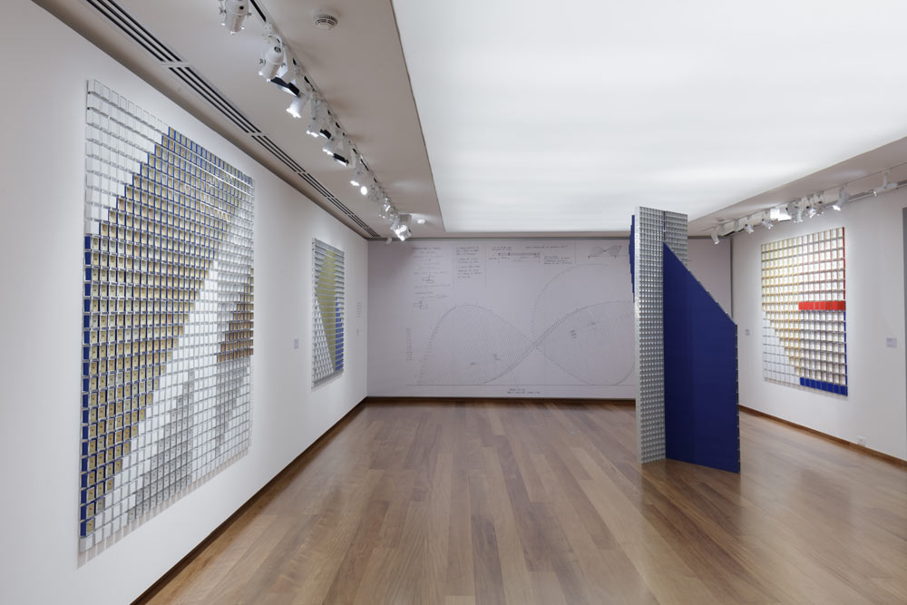 AMMM: As cores que existem são industriais. Por isso, tenho de usar as cores disponíveis. O vermelho só tem um tom; o azul existe o claro, o médio; o amarelo só existe num tom. Tenho de me submeter a esse condicionante. Não dá para cortar as peças e pintar cada uma no atelier, pois, no alumínio, há um problema de aderência. Então o alumínio, comprado no formato de tubos quadrados de 2”x 2” e 6 metros de comprimento, conforme vendido no mercado da construção civil, tem de ser pintado em estufa, a cerca de 200º graus. Após a pintura, os tubos são trazidos de volta ao atelier onde são cortados com 2 cm e que são utilizados na criação das esculturas. Essa lógica construtiva confere ao trabalho um certo aspeto gráfico que, também, já foi objeto de atenção de Felipe Scovino, que os analisou como GRIDs, no Catálogo da Exposição de Ascânio MMM (2022), Museu Niemeyer, Curitiba (PR).
