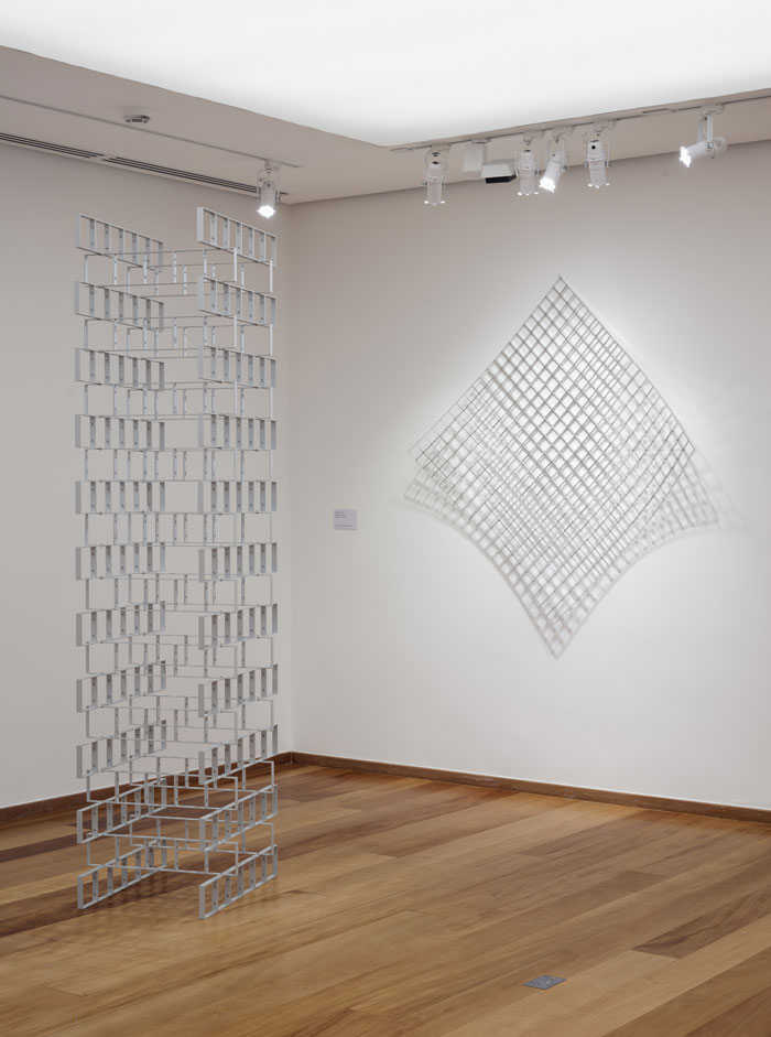 AMMM: Na minha obra há uma questão importante: todos os trabalhos são executados no meu atelier, o percurso PROJETO/OBJETO é realizado no meu atelier. Eu projeto e construo a obra, determino o perfil de alumínio, que chega ao atelier em barras de seis metros. A manipulação do material, a descoberta de novas potencialidades do material – tanto na madeira como no alumínio - no cortar, furar, etc. tem sido muito importante na pesquisa e descoberta de novos caminhos.
