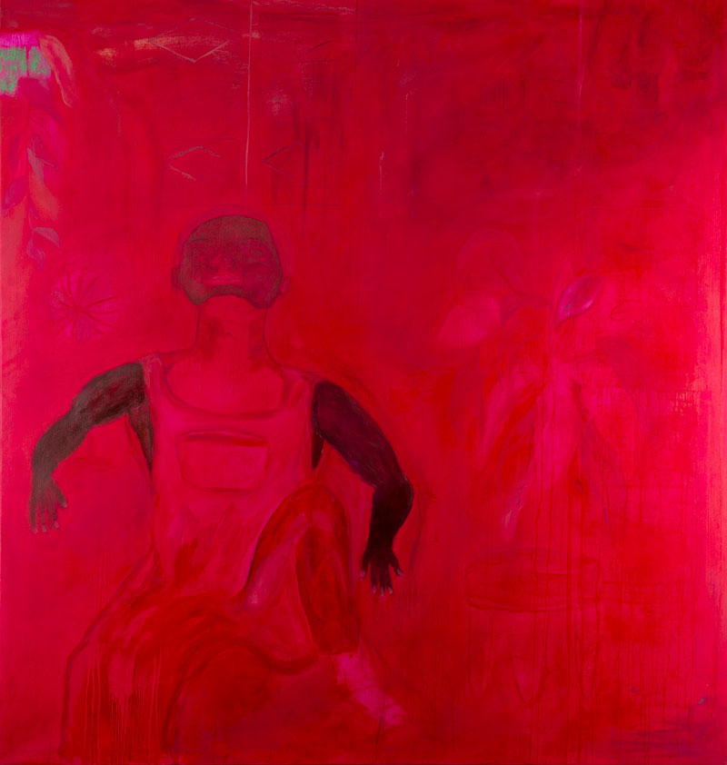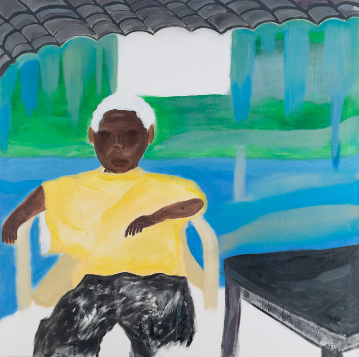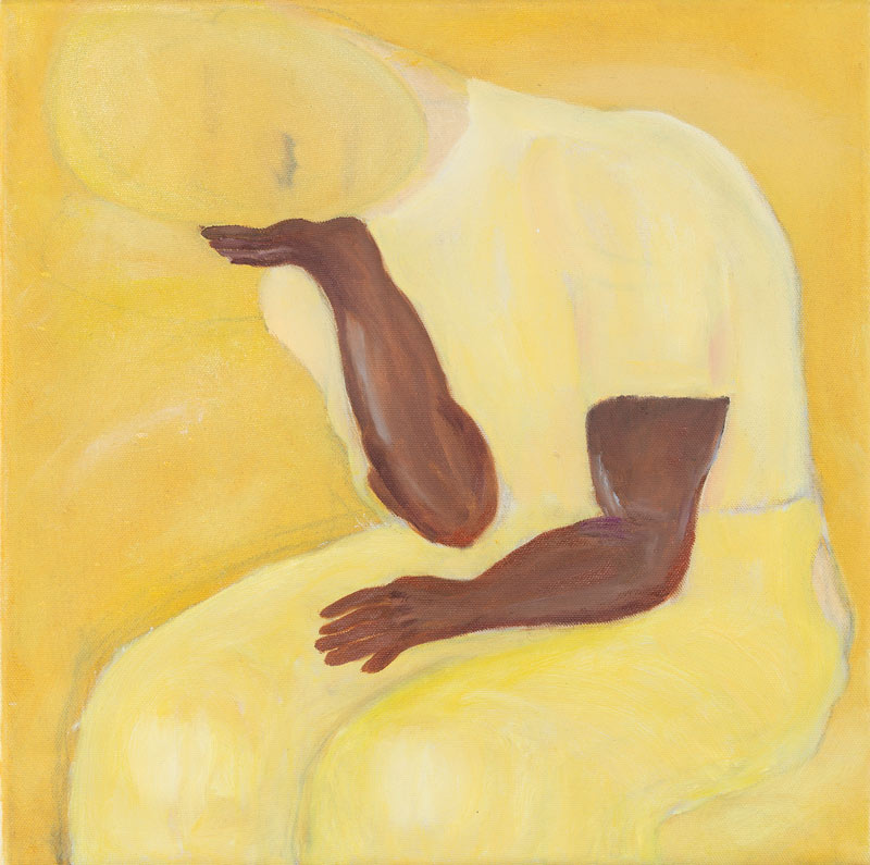 As cabeças das figuras que aparecem nas pinturas são negras e não há uma diferença entre o corpo e o espaço onde se encontram sentadas. Tudo é uma coisa só.