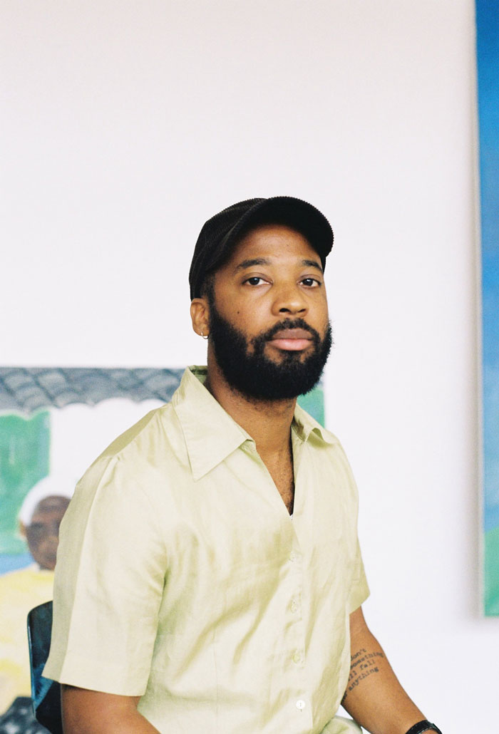 A Lunete Yadomboate, que também pinta muito bem, em 2022 estava com uma exposição individual aqui perto e quando vi as obras dela foi um sonho, pensei logo que queria pintar como ela pinta, foi algo espiritual ver pessoas negras representadas em pinturas nessa exposição. Jennifer Packer também é outra artista que gosto muito, das suas pinturas. Nathaniel Mary Quinn é um pintor que faz colagens. Existem muitos artistas como Lubaina Himid e Noah Davis, gosto bué.