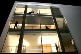 R: Será de algum modo polémico chamar arte politizada a algumas das intervenções apresentadas, mas diria que a linha condutora do ciclo “The Return of the Real†é apresentar alguma da arte portuguesa mais crÃtica revelada sobretudo a partir do inÃcio dos anos 90 até à actualidade. A próxima programação já terá, inclusive, artistas de uma geração mais recente e trata-se sempre de encontrar uma produção artÃstica que de facto faça apelo a questões polÃticas e sociais sem nunca abdicar de uma exigência crÃtica sobre o nosso mundo actual, contrariando assim a homogeneização cultural que o capitalismo introduziu e exponenciou. O que nos interessa com este ciclo é a tentativa de identificar a arte contemporânea com um reduto de pensamento crÃtico, capaz de desestabilizar os estereótipos e aquilo que são as ideias mais comuns relacionadas com a produção cultural e artÃstica. É nesse sentido que o ciclo “The Return of the Real†tem apresentado obras de artistas com uma produção, quanto a mim, marcadamente politizada, mesmo quando, por vezes, os próprios artistas não gostam muito desta conotação. Mas eu diria que isso acaba por ser evidente em todos eles. Todavia, em relação à s exposições do museu mais ligadas à contemporaneidade, nem todas estão integradas no ciclo de arte contemporânea “The Return of the Realâ€. É o caso da exposição de Design que neste momento está no piso 1 e das exposições que estamos a programar relativamente a disciplinas como a arquitectura ou a fotografia. O ciclo de arte contemporânea tem uma sala própria mas pode extravasar para a recepção, para o átrio, onde se estabelece uma forte relação com a rua principal da cidade. Por vezes, realizam performances fora do edifÃcio, como aconteceu com a Alice Geirinhas, que apresentou uma performance intitulada “Palácio de Cristal†que era realizada numa das fachadas de vidro do edifÃcio, e que, para assistir à performance, tÃnhamos de estar no exterior do edifÃcio. De outro modo, Miguel Palma, no âmbito do projecto “Sementeira†realizou uma performance num jardim de Vila Franca em torno da peça com o mesmo nome, esse aparelho que é uma obra de arte de face funcional. Esta foi também uma forma de mostrar que o museu também sai das suas quatro paredes e sai do seu âmbito mais restrito de espaço museológico. Hoje, o ciclo â€The Return of the Real†já conquistou o seu lugar na orientação programática do Museu do Neo-Realismo, mas foi uma conquista bastante difÃcil junto de algumas pessoas que criaram uma expectativa estanque sobre o museu, defendendo que este deveria estar exclusivamente ligado ao movimento neo-realista.