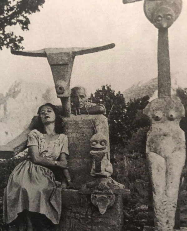 Dorothea Tanning e Max Ernst com a sua escultura Capricorn, 1947. © John Kasnetsis