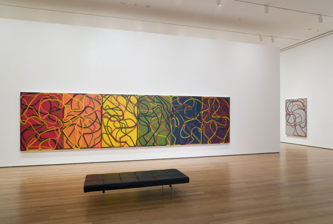 Vista da exposição "Brice Marden: A Retrospective of Paintings and Drawings", 2006-2007. Foto: Jonathan Muzikar.