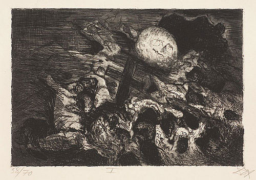 Nas plásticas Der Krieg (1924) gravura de Otto Dix, artista do expressionismo alemão.