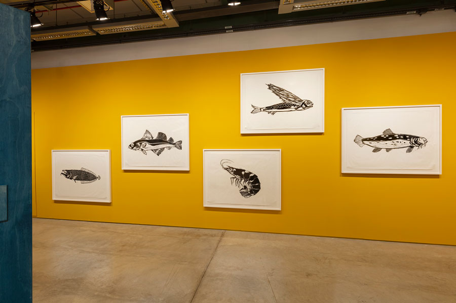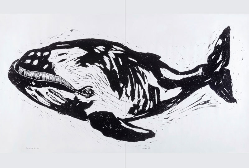 Igor Romualdo Com um desenho intuitivo que parte da memória mais do que da observação direta, Igor Romualdo povoa suas xilogravuras de ambientes naturais, com os quais pode ou não ter tido contato direto. Bichos simpáticos, apesar de sua ferocidade, animais mais ou menos selvagens, peixes, baleias, mansamente posicionados sobre um fundo quase inexistente, nos aproximam de toda uma animália que habita o imaginário fértil do artista. Hoje professor, o jovem deu início a sua formação artística no Instituto Acaia, onde hoje atua. Ali a aposta é no fazer coletivo e compartilhado, no qual a criatividade se alia à técnica por meio de processos espontâneos, enriquecidos pela vivência e pelo repertório de cada um. Igor tira partido desse contato, dispensando qualquer gesto artificial que possa atrair repertórios que não sejam seus e mantendo-se fiel a uma gestualidade descontraída que se apropria de formas erráticas. Seu corpo relaxa enquanto ele risca diretamente a madeira, ao encontro das formas desses bichos pacatos que vão surgindo ao escavá-la com gestos abertos. O gesto expressa uma compreensão do contraste a ser provocado pela técnica xilográfica, esvaziando as figuras e subentendendo os limites do desenho, que modula de forma orgânica e expressiva.