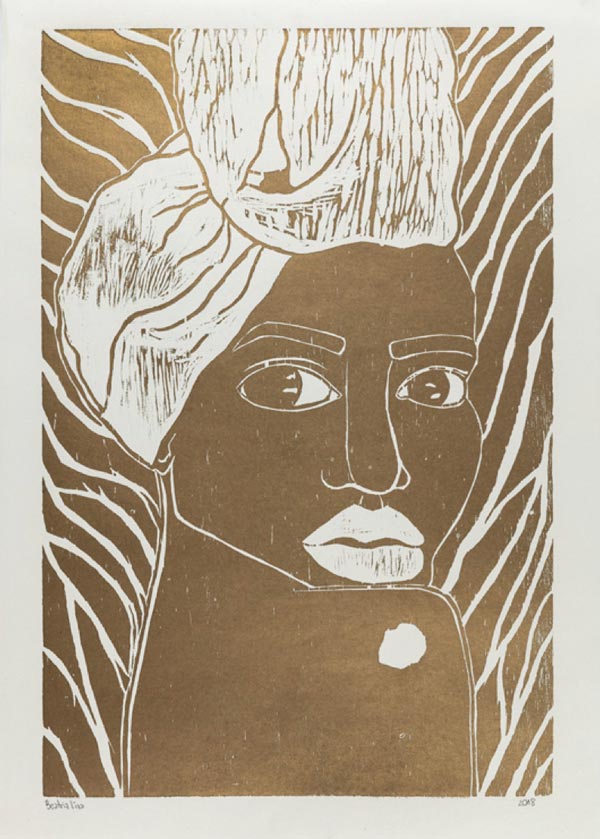 Lira Nos processos que conduziram a escrita e o debate ocidental da história da arte, é comum a discussão sobre o belo se confundir com as escolhas estéticas e o debate sobre o fazer artístico. O belo insinuou-se nessa história por diversas mãos e interesses, tendo por objeto recorrente o corpo feminino e a paisagem. Apoiando as mais diversas narrativas, a paisagem sublime ou reconfortante e o corpo feminino surgem invariavelmente de acordo com os padrões e contextos de cada época e lugar, e alimentam uma relação com o objeto artístico que parte de uma ideia de harmonia e contemplação, exigindo-lhe que seja belo. Habituados que estamos a presenciar rostos e corpos femininos em quase todos os gêneros artísticos, não teríamos por que considerar a série de xilogravuras que Lira nos apresenta nesta exposição um gesto político. Mas, olhando-nos seriamente e entintados em dourado, esses rostos parecem pleitear outras condições para habitar a arte, discrepando de uma atitude que apela à beleza. Com títulos de diversos continentes, as imagens apresentam mulheres que se distanciam do exótico e se impõem em nosso imaginário a partir de recursos próprios. A cor dourada interfere nessa percepção, confundindo os limites do desenho e de sua simbologia. Uma nova relação se apresenta, reivindica-se a existência e a presença.