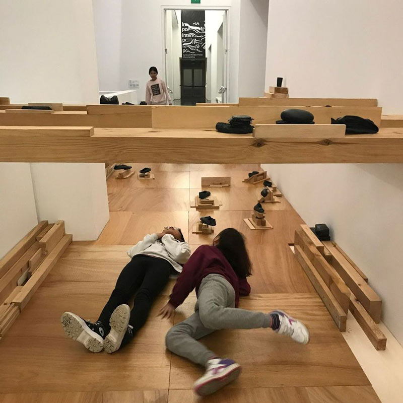 Na última sala encontrámos uma instalação de grande escala, No Ar/On Air; aqui Marcelle tinha montado uma emissora de rádio na qual o espectador podia programar a sua música e interferir na programação de outros espectadores. Por sugestão de Milos, ficámos ali um bom bocado, tentando escolher uma música que agradasse a ambos. Estivémos no MACBA duas horas e um quarto. Após a primeira hora, Milos reclamou cansaço, dor de cabeça, mas notei que era um protesto automático ao universo adulto, por isso o encorajei a continuar e acabámos por ver todos os pisos, incluindo a performance com caixas de cartão que acontecia no rés-do-chão, e com a qual Milos ficou perplexo: nós no meio de um grupo de jovens acariciando caixas, dançando com elas, fundindo-se com um material intimamente ligado à pobreza, ao perecível e à fragilidade. Dali em diante, segundo o lugar-comum, começaria a diversão de Milos. Almoçámos no McDonald's, ele o seu happy meal, eu uma Signature, apanhamos o autocarro, e quase uma hora depois de entrar, saímos na paragem da CosmoCaixa, na outra ponta da cidade. O espaço da CosmoCaixa é imponente. Um edifício de 50.000 m2 destinado à aprendizagem e ao entretenimento dos mais pequenos. Mas bastaram vinte minutos para notar uma particularidade. Para além de mergulhar num bosque inundado fascinante, com pântanos, peixes pré-históricos e árvores altíssimas, o único estímulo para as crianças consistia em carregar num botão para activar os dispositivos. Não quero ser injusto, mas contavam-se pelas mãos as situações em que a intervenção humana excedia o facto de carregar num botão ou girar uma manivela. São dispositivos que efectuam experiências físicas, químicas e astronómicas, e a participação do público é bastante limitada. Não há imersão, e não me refiro às tristemente famosas experiências imersivas actuais, mas sim à restrição da experiência. De regresso no comboio para Tarragona, perguntei-lhe qual dos dois museus tinha preferido; Milos pronunciou-se, sem duvidar, a favor da CosmoCaixa. Acredito na palavra de Milos, lógico, mas a minha impressão sobre o seu percurso indica-me que as vivências no MACBA transformavam o seu trânsito numa experiência, o que não sucedeu na CosmoCaixa. Uma das provas é a memória sobre as peças do museu de arte contemporânea de que mais gostou. As mesmas que destaquei neste texto, com base na sua opinião. Ao mesmo tempo, as fotos funcionam como indício. No MACBA aparece atento, entusiasmado, executando diferentes movimentos, com o corpo alterado e alterando o espaço, com a matéria das obras em diálogo com ele, ainda que não compreendera plenamente o que sucedia à sua volta, como nenhum de nós compreende, e por isso é feliz. Em vez disso, as imagens feitas na CosmoCaixa mostram-no diante de um ecrã, pressionando botões. No museu de ciência, o único sentido em jogo é a visão: carregar para observar, e manter-se à distância. A da CosmoCaixa é uma experiência passiva, passiva no pior sentido. Em tempos de hiperactividade e hiperconsumo, nada tenho contra o carácter passivo da experiência, ao contrário, mas na CosmoCaixa incentiva-se uma espécie de hiperpassividade. No texto “Will you laugh for me, please?”, o filósofo esloveno Slavoj Žižek, referindo-se à moda interativa vigente, diz: “Olham fixa e aturdidamente para o ecrã, a real ameaça dos novos meios de comunicação é que eles privam-nos da nossa passividade, da nossa experiência passiva autêntica, e assim nos preparam para a estúpida e frenética actividade – para o trabalho interminável”. Poderia parecer que Žižek fala de outra coisa, porém, está a falar sobre o mesmo. Um esclarecimento. Tenho a certeza de que se tivéssemos visitado o Prado este texto não existiria. Não distingo, portanto, entre um museu de ciência e um museu de arte, mas sim entre um de ciência e um de arte contemporânea. Um tipo de arte cuja definição (talvez caduca) fuja para a frente, transbordando qualquer classificação; uma arte que de tanto provocar, às vezes, se torna previsível, e em geral só comove (se comove) o espectador iniciado, ou seja, os participantes da área. Mas o que aconteceu com Milos demonstra a ascendência da arte contemporânea sobre as crianças, a princípio, não iniciados às vicissitudes contemporâneas nem aos conceitos. Não digo, levianamente, que Milos divertiu-se mais no MACBA: descarto de todo semelhante banalidade. O que tento dizer é que no MACBA se agenciou uma experiência, apesar, ou por causa, dos seus oito anos, e uma experiência envolve múltiplas vivências, incluindo contraditórias: entusiasmo, alegria, felicidade, tristeza, aborrecimento, cansaço, distração, incompreensão. Benjamin, no ensaio “Arte do coleccionismo”, escreve: “O preconceito, digo, de que as crianças conformam existências tão singulares e incomensuráveis que é preciso ser especialmente engenhoso na produção do seu entretenimento. É inútil estar obstinadamente atentos à fabricação de objectos – meios visuais, brinquedos ou livros – que sejam adequados para crianças. Desde o Iluminismo que se trata de uma das reflexões mais bolorentas do pedagogo”. Formulo-o de outra maneira: Milos aprendeu algo na excursão ao MACBA impossível de aprender numa instituição destinada à aprendizagem.