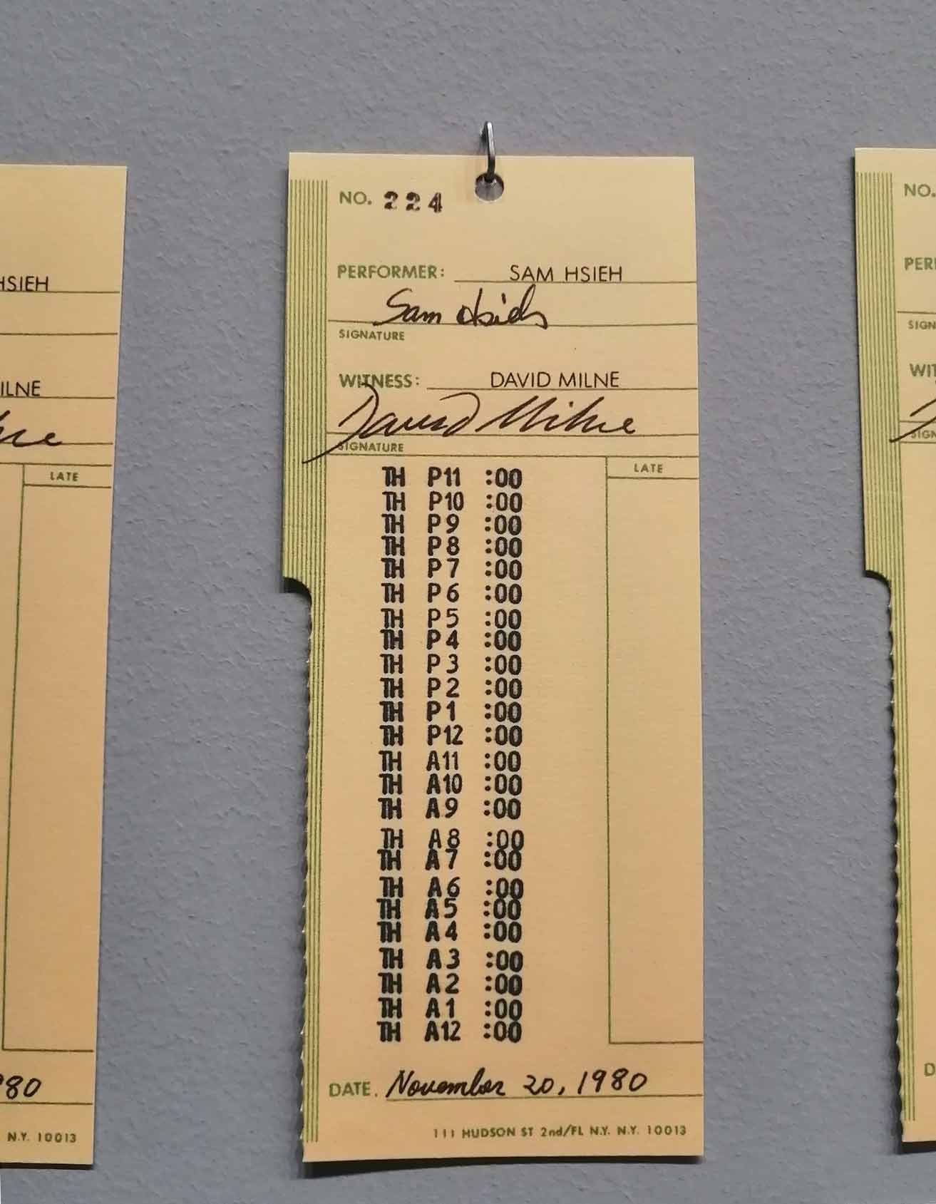 No texto curatorial da exposição de Tehching Hsieh, por Klaus Biesenbach e Lisa Botti, patente de 1 de Abril a 24 de Setembro de 2023 na Nue Nationalgalerie, em Berlim, pode-se ler em citação directa a seguinte afirmação do artista: