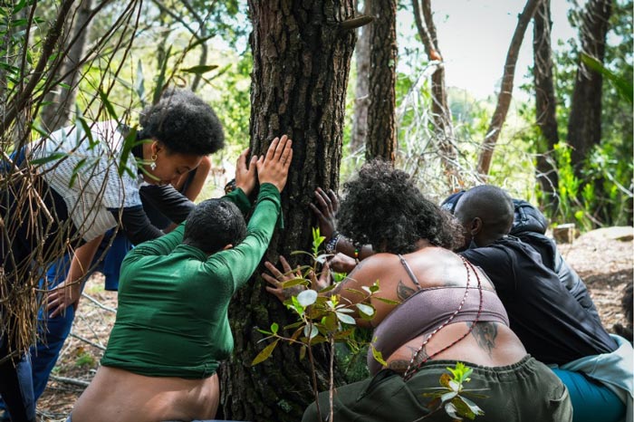 O workshop do Luan Okun aconteceu no meio de uma mata onde foram trazidos alguns rituais, questões sobre o corpo e sobre a natureza. Foi um momento muito bonito. Foi um workshop muito bom para conseguirmos respirar, para ouvirmo-nos.