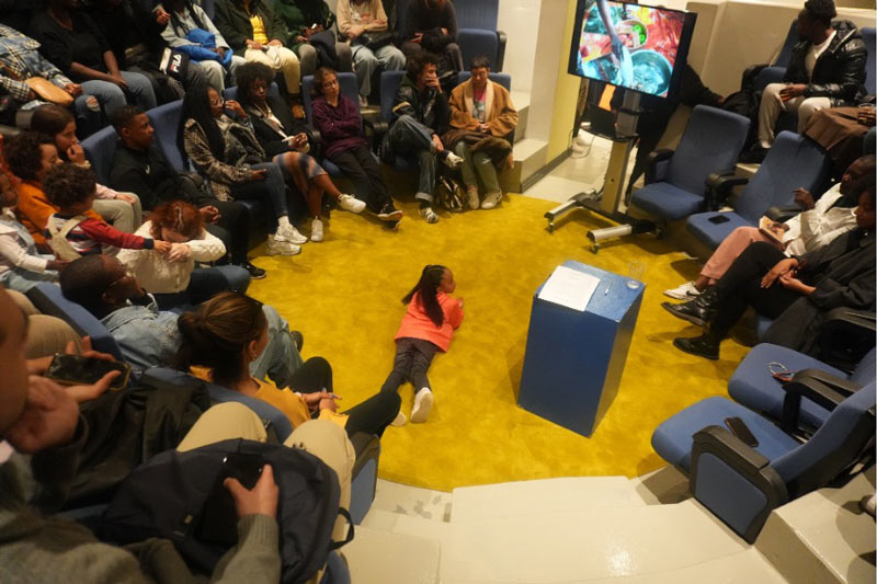 Estamos a refletir, tivemos uma vontade grande de fazer acontecer naquele espaço também pelas nossas experiências, existência, sendo que, foi aquele território que os nossos corpos foram periferizados e nos deparámos com uma presença negra tão grande, uma presença cultural africana de uma mistura de vários pontos de África, mas também, da América do Sul quando falamos do Brasil. É como se estivéssemos a enaltecer e ao mesmo tempo a ressignificar o espaço onde vivemos, assim como, a retribuir ao espaço aquilo que nos deu. Avaliando a minha experiência, aquele espaço fez-me sentir em casa. não propriamente pela arquitetura material mas pela arquitetura mais efémera: a subjetividade das existências que ali estavam. Sempre me foi permitido ver pessoas como eu, ver realidades como a minha, e isso para mim, nunca foi uma dificuldade para estar em espaços como por exemplo a escola, porque eu sempre tive ao meu redor pessoas semelhantes a mim.