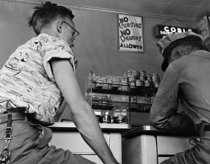 É interessante pensar como muitas mulheres se têm dedicado a este medium desde os anos 1970, enquanto a fotografia se afirmava como meio artístico per se. O interesse das mulheres à fotografia pode significar um espaço que ainda lhes era possível preencher devido à possibilidade de definir regras, ao mesmo tempo que servia para comunicar as mudanças sociais que então se desenrolavam um pouco por todo o mundo. Se as mulheres foram objecto de interesse das câmaras até aos anos 1950, a partir dos anos 1960 a sua utilização pelos movimentos de libertação feminina é marcante. Nos anos 1960, a fotografia, quando usada por mulheres, permite olhares íntimos – como no caso de Letizia Battaglia, que, por ser mulher e, portanto, “não considerada uma ameaça”, [9] acedeu aos interiores das casas dos habitantes de Palermo – ou olhares cruzados e actualizados, – como no caso do trabalho da americana Berenice Abbott (1898-1991). O seu projecto US Route 1, entre o Maine e a Flórida nas décadas 1950-1970 foi reconsiderado e retrabalhado pela dupla Anna Fox e Karen Knorr entre 2015 e 2025. Este diálogo entre diferentes gerações mostra como através de arquivos se podem revelar as profundas mutações vividas pela sociedade (sejam elas económicas, migratórias ou identitárias) e permitem uma visão mais alargada da vida. (FIG. 7)