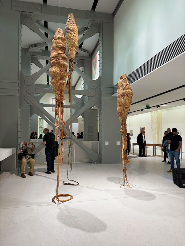 Antes de seguir adiante Carlos Bunga reconhece a sua mente como o seu atelier. O espaço expositivo é o seu atelier – trabalha in situ. A presença de outros artistas e das suas obras traz uma riqueza imensurável à exposição. Carrie Mae, uma artista americana que tem a comunicação como um dos elementos da sua criação artística, imagina nas suas palestras, para falar através do seu trabalho, como é radiante entender que os artistas estão conectados. Atenção a isso não é ingenuidade, é reconhecer simbolismos fortes: nada é por acaso e a arte é sempre um espaço de imaginação intencionada.