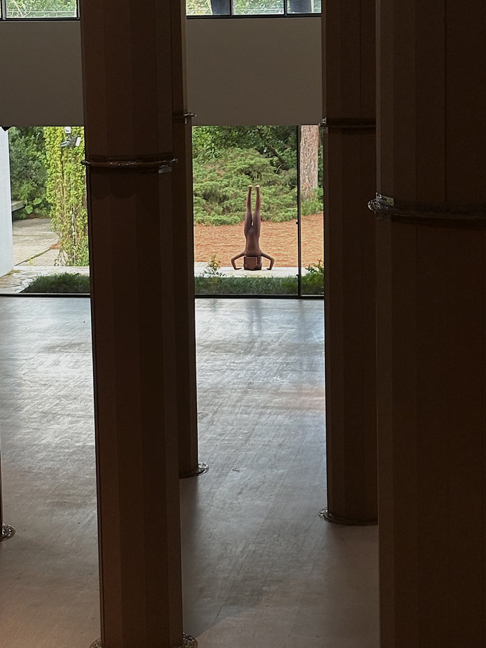 Assim, encontramos a oportunidade de conhecer Túlia Saldanha na obra Sala de Descontração [1975], ao mesmo tempo que Bunga apresenta The Place Where We Daily Abandon the World [2021], que ecoa com Picnique [1972–1977], também de Túlia. Há também Estudos para Trajecto de um Corpo [1976–77] de Alberto Carneiro; Tela Habitada [1976] de Helena Almeida; e Metamorphose [2000] de Bunga — obras em que o corpo é o próprio elemento artístico.
