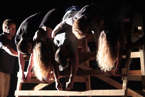 Desde a primeira apresentação, esta foi a edição do FMD que ofereceu maior número de propostas internacionais, em diálogo com algumas recentes produções nacionais e encomendas diretas a artistas para projetos realizados com os habitantes locais. Do Brasil chegou a peça do coreógrafo Marcelo Evelin, De repente fica tudo preto de gente, que reflete sobre a relação entre as massas (de gente e de corpos), o poder e o medo, partindo de um livro de Elias Canetti “Massas e Poder” (1960). De entre Quito e Bruxelas, surgiu a maravilhosa e desconcertante proposta do jovem coreógrafo e bailarino equatoriano Fábian Barba, A Mary Wigman Dance Evening: a reactualização/recriação de um recital de 1930 de Wigman, expoente da dança moderna e expressionista alemã. Aqui, abalam-se as categorias historicistas de passado/presente/futuro – ou, se pensarmos na história da arte, do clássico/moderno/contemporâneo – para, tão delicadamente, nos lembrar que o agora é não-uno, tanto na coexistência de temporalidades, como na suas inúmeras geografias. Este terá sido um dos momentos singulares do festival, tanto mais por ter sido ancorado numa conferência proferida por Fábian Barba no dia anterior, seguida de uma conversa com Anabela Silva e Ana Dinger. Num tom de dádiva, Fábian expõe fragilidades e inquietudes sobre o seu pensar e fazer a dança, sobre a experiência que trazia do Equador versus os padrões europeus e norte-americanos professados em escolas como a P.A.R.T.S. em Bruxelas, onde fez a sua formação recente. O que é o contemporâneo da dança e onde reside a diferença entre este e a categoria “dança contemporânea”? Que relações de poder e (pós)colonização se estabelecem nestas classificações, quando olhadas e aplicadas territorialmente entre países periféricos (entendidos como subdesenvolvidos) e outros centralizados, ou desenvolvidos? No final, ao dançar Mary Wigman (afinal, não tão distante do Equador), Fabian Barba lembra-nos o quão pouco temporal e territorial é o contemporâneo. De Marrakech, a jovem coreógrafa marroquina Bouchra Ouizen, em colaboração com as três companheiras de viagem e de trabalho – Kabboura Aït, Ben Hmad, El Hanna Fatéma, Naïma Sahmoud -, senhoras de meia-idade e cantoras Aïta, propôs Ha!, uma peça-experiência sobre a loucura, sua e de quem se permitiu penetrar no seu ritual extático. Ficaríamos satisfeitos somente com os dez primeiros minutos da peça, e a premissa da coreógrafa realizar-se-ia: não a apresentação de uma peça de dança, mas o convite à experiência. Próximo da hipnose, a atenção do público é capturada nas vozes e gritos exalados que se repetem, nas cabeças e no corpo agitado, devolvendo à plateia uma energia tão perturbadora quanto vital. Kevin Jean, coreógrafo francês, usa um episódio de lesão física nos pés para questionar os cânones do virtuosismo na dança contemporânea, e fá-lo apresentando a proposta La 36ème Chambre, um solo com o corpo em posição invertida e suspenso pelos pés. Com outra perspectiva espacial e corporal, Kevin Jean propõe toda uma nova dança. Partindo da evocação da ausência física trabalhada em diversos sentidos, o coreógrafo tunisino Radhouanne El Meddeb dirige Nos limites, uma história comovente protagonizada pelo duo de acrobatas franceses, Alexandre Fournier e Mattias Pilet, que reitera o desejo de mostrar a beleza da fragilidade humana. Finalmente, de Itália, Lourenzo Senni traz um concerto audiovisual onde explora as potencialidades hipnóticas da música transe, acompanhada pelo desenho minimal dos lasers no espaço cénico. Das propostas nacionais, Cláudia Dias apresentou Vontade de Ter Vontade, uma travessia em terreno incerto (um retângulo de areia), marcado pela passagem do tempo (e da vida), pautado pelo texto e pelo despir, onde os passos da coreógrafa vão deixando rasto. Ao perguntar-se continuamente “se eu for por aqui...”, Cláudia Dias transporta-se para destinos imaginários que vão do norte da Europa, às ex-colónias, apoiados numa reflexão irónica sobre o estado atual do país, da Europa, das clivagens e ambiguidades norte-sul, central-periférico, colonizador-colonizado. Quais as condições de possibilidade para um futuro próximo ou distante? Onde alicerçar a vontade resiliente de ficar, ou a vontade de ir? Francisco Campos e Leonor Keil trazem Insight, um trabalho que procura expor, de modo caricatural, a agitação interna dos pensamentos, acompanhados de um movimento coreografado em loop, tornando audível o texto que cada personagem discorre dentro de si e com o outro. Em Fica no Singelo, de Clara Andermatt, a proposta debruça-se sobre o encontro entre o património popular e a cultura artística, matéria para aquilo que na linguagem dos corpos lhes transmigra e é comum – o prazer de dançar. Note-se também a importância da música e o arrastar das noites longas animadas por Dj’s, a força da palavra dita por Capicua, que apresentou cabeça e cauda do seu álbum Sereia Louca, e o hino desta edição FMD de 2014 “Casa de Campo”. Enquadrado nos projetos com a comunidade, Cláudia Gaiolas & Rita Rio de Sousa, com a participação dos trabalhadores de algumas das indústrias de curtumes do concelho de Alcanena, apresentam a peça de teatro e vídeo Não Sou Só Eu Aqui. A partir do espaço, da memória e dos movimentos do trabalho que se enraíza no corpo, este projeto oferece à comunidade envolvida um espaço de abertura para um outro olhar sobre si mesmo. Tempo do Corpo é o nome de outro projeto realizado com a comunidade local dirigido pela coreógrafa Sofia Silva à população sénior, com mais de 65 anos de idade. São duas semanas de trabalho intensivo, com pessoas sem experiência em dança e algumas já com certas limitações físicas, que resultam numa apresentação pública comprovando que não há limites intransponíveis para o corpo. Quadros preenchidos por