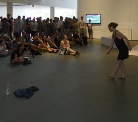 Introdução “É o fim da cultura material e da conformização da arte. Já não se trata apenas de comprar uma pintura e pendura-la na parede” (…) o “conceito de coleccionar arte contemporânea tem que mudar; os coleccionadores têm que se reeducar para que a ideia [por detrás de uma peça] se torne tão necessária como o objecto físico.” (Harris, 2010) A artista performativa Marina Abramovic, considera que a cultura material acabou, e tem razão. A imaterialidade está constantemente a aparecer no nosso dia-a-dia e não apenas na arte. O enorme crescimento da Internet por exemplo, fez-nos perceber que a cultura está-se a tornar cada vez mais virtual e menos objectificada. Deste modo, é natural que muitos artistas contemporâneos estejam a explorar formas de arte como a performance. Também é necessário que estrutura interna dos museus de arte contemporânea aponte na direcção desta tendência de maneira a manter a sua missão de coleccionar, preservar e apresentar a arte. “A performance art está a ter um momento? Parece que sim. E não só um momento - é mais uma serie de momentos. Ao vivo, time-based, obras que incorporam a dança, movimento, vocalização e outras acções físicas tornara-se uma parte estabelecida das programações dos museus, pelo menos em instituições contemporâneas.” (Ise, 2013) Sem dúvida nos últimos anos temos vindo a ser confrontados pela performance e as instituições artísticas estão-se a envolver activamente neste processo. [Fig. 1] A relação entre o artista e instituição está a mudar assim como os valores e organização do esqueleto da mesma. Donna De Salvo, curadora chefe e directora de programas do Whitney declarou que “na época do digital, do virtual e da experiencia mediada há uma certa intimidade em ver uma performance ao vivo.” (Pogrebin, 2012) Existe um desejo crescente do público em participar e de se relacionar mais directamente com a arte: “A maioria dos teóricos concordam que hoje em dia o museu se baseou no cinema e nos parques temáticos para se tornar num espectáculo que desperta todos os sentidos, seja encenado para provocar uma experiencia estética ou um contexto histórico ou um ambiente de aprendizagem interactivo.” (Marstine, 2006) O factor de interactividade nos museus é muito motivador para o visitante e a performance acaba por aproximar mais as pessoas à obra, dissolvendo as barreiras entre artista e publico. Como RoseLee Goldberg (Directora e curadora da Performa) considera, “a experiencia de assistir a uma performance ao vivo é, predominantemente, visual e como essa linguagem (a de gestos e movimento) é universal” é mais fácil de alcançar públicos diferentes e ultrapassar as barreiras entre culturas. (Goldberg, 2012) No entanto, considerando que a performance é uma forma de arte altamente intangível e efémera, é natural que as instituições artistas tenham algumas dificuldades em se envolverem com ela. Apresentar, conservar e coleccionar a performace art apresenta alguns desafios para os departamentos de um museu de arte, e é exactamente isso que vai ser discutido neste artigo. Existem tantas questões que estão a privar a apresentação, conservação e colecção adequada da performance, que podem estar relacionadas com a própria instituição ou com o artista. A boa noticia é que ultimamente muitos académicos, críticos e curadores têm dedicado o seu tempo e conhecimento a olhar para estas questões e a gerar discussões e investigação à volta deste tema. Por isso, com tanta atenção na performance art, o que é que pode correr mal?