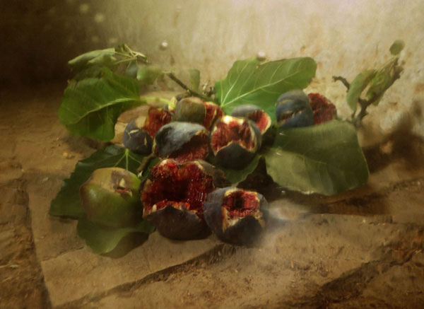 As pinturas fecham o olhar sobre o que elas mostram, as fotografias abrem-no, em direção ao desconhecido, em direção ao sonho. Reparem neste simples saco de pano suspenso: pode ver ali um vestido, um fantasma, um animal marinho, um pedaço de carne, quem sabe? Os ramos pendentes parecem desenhar com a sua sombra caligrafias abstratas; jovens raparigas fundem-se nas flores e na vegetação como Dafne transformando-se num loureiro (enquanto nas duas pinturas do século XVIII das quatro estações, as duas mulheres com as suas expressões inocentes, são bem presentes e preferem desviar as atenções dos frutos da primavera ou do outono, artisticamente pintados ao seu lado).