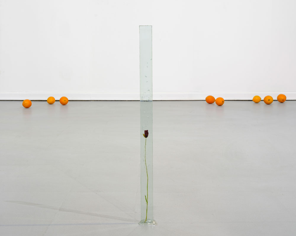 No começo do percurso, Almendra colocou uma estrutura ténue, delgada, sobre o solo, ao centro da sala. Vários materiais, alguns de frágil construção, como chapas onduladas entre outros, assomam, articulados entre si, de modo débil. A estrutura, que aparenta ser uma amostra de um pequeno habitat, um abrigo, ou vedação, foi construída com o recurso a vários materiais reciclados, que terão sido encontrados ao acaso, no campo ou na cidade. Intuímos essas pequenas construções, como os espaços imaginados em que se inserem. Almendra consegue, primeiro, transportar-me para fora da galeria, e depois, fazer-me perceber, através da transitoriedade, a inexistência de barreiras arquitectónicas.