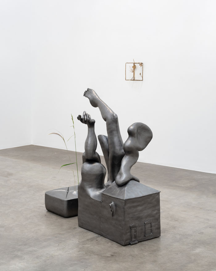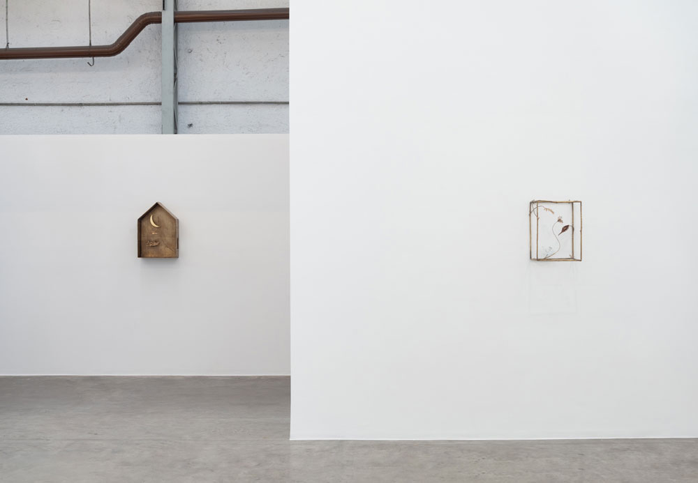 A exposição concentra-se numa sala central do todo arquitectónico da galeria, sendo anunciada por uma das peças de transição entre os dois grupos, situada no corredor por onde entramos. O que aparenta ser uma caixa de cartão em forma de casa, seguindo o protocolo infantil de um quadrado sob um triângulo, protege elementos naturais sugestivos de um céu noturno; a luz lunar, nuvens douradas. Após esta peça, que nomeio de transição entre os dois grupos de esculturas dado o corpo mais sólido do que as restantes do segundo grupo, onde se insere, é intitulada “Noite na Terra”. As restantes constituintes do conjunto, todas realizadas no período entre 2024 e 2026 são intituladas de Canção para o meu pai; Composição para o meu pai; Sonho para o meu pai. O familiar e o sonho encontram nelas um universo único, e talvez o teor da poesia dos títulos explicite a sensação se suspensão que estas carregam. Já as restantes esculturas, de corpo sólido e antropomórfico, são apelidadas de Positions; Evening all day long; Avenida Ipiranga, 200 - Centro Histórico de São Paulo, São Paulo - SP, 01046 010, Brazil.