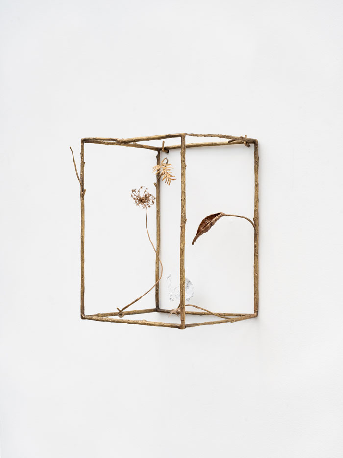Jesse Wine (Inglaterra, 1983), sediado em Nova Iorque, apresenta a sua primeira exposição individual no Brasil na Galeria Fortes D'Aloia & Gabriel - Barra Funda, em São Paulo, onde mostra obras recentes em cerâmica e bronze. Visitar a sua exposição não acontece sem que as antecâmaras nos condicionem a percepção; mesmo antes de entrar na Galeria experimentamos o calor húmido de São Paulo, chegamos suados e cheios de odores vindos de uma rua sem grande movimento, de tons amarelados, onde temos uma primeira interacção com o funcionário - segurança, porteiro? - que à porta nos recebe. Até aqui, a experiência é inevitavelmente diferenciada da visita a uma galeria europeia. Entramos depois num espaço surpreendente, contrastante com a rua de onde vimos; amplo, branco, de arquitectura organizada, múltiplas ventoinhas em funcionamento, e dois simpáticos funcionários nos indicam as exposições disponíveis para visita, assim como fornecem os documentos onde a informação sobre a mesma consta. A primeira sala, antes de chegarmos a Amor e outros estranhos, é ocupada pela exposição colectiva Até um carvalho enlouqueceu, título que não poderia servir de melhor epígrafe à exposição de Jesse, com pinturas abstractas e materialmente, no bom sentido do termo do português europeu, pesadas. Pertencem estas obras aos artistas Bruno Dunley (Brasil), Laís Amaral (Brasil), Marina Rheingantz (Brasil) e Richard Aldrich (Estados Unidos). Segundo as palavras e informação cedidas pela galeria, “a mostra reúne artistas de contextos distintos cujas práticas compartilham um engajamento com a abstração enquanto processo material, perceptivo e temporal. O título da exposição faz referência ao mito de Orfeu, sublinhando a indistinção entre matéria animada e inanimada, entre o invisível e a sua tangível presença trazida pelos artistas.” Chegamos então à exposição de Jesse Wine, já com uma predisposição para ver e experienciar o potencial, não necessariamente verificável, do simbolismo da abstracção. Se a entrada na galeria estreitou a percepção, abrindo espaço visual para o que vem, a primeira exposição estabeleceu de forma definitiva o corte entre a realidade da cidade e o espaço protegido onde narrativas artísticas se mostram e dirigiu a percepção para universos com referenciais outros que não os que dela nos chegam. Apresentam-se dois grupos de esculturas, que de alguma forma resvalam por sensibilidades diferentes. Se o compacto das esculturas metamórficas, monocromos voluptuosos, marcam o espaço com uma gravidade séria, e um formalismo com reminiscências do século XX, o segundo grupo de esculturas - o que me apelou à sensibilidade e memórias de ligação à terra, e de um retorno a esse espaço simbólico para o qual os sucessivos portais nos prepararam, o mesmo a que o faz de conta inevitavelmente recorre - aparentemente frágil, de uma delicadeza espectral. Apesar do bronze, este segundo grupo de esculturas de parede cujo enquadramento se assemelha a pequenos cubos flutuantes contra a parede branca, cujas arestas sólidas de ramos definem um espaço proto-cénico e onde outros elementos aparentemente naturais vivem... Retomo o início da frase; apesar do bronze, material de que são feitas, estas esculturas encenam com leveza possíveis paisagens bucólicas. Apesar de não estar certa do porquê do apelo de peças de tão grande simplicidade, transmitem-me estas uma sensação de suspensão, de voo, e também de suspensão do tempo. Não apenas do tempo dos elementos apresentados, que se deduzem recolhidos, secos e reformulados e não apenas pela escala que se reduz frente à grande superfície branca das paredes da galeria.