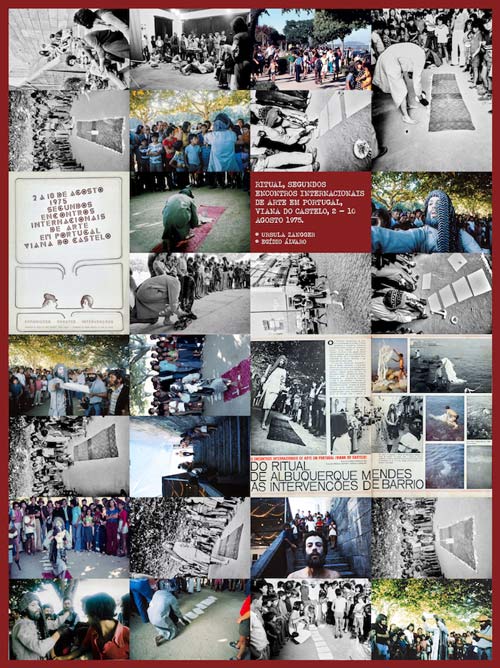 Cartaz "1975, Segundos Encontros Internacionais de Arte em Portugal", na exposição Albuquerque Mendes: Corpo de Performance, Museu da Vila Velha, Vila Real. Cortesia da curadora e Museu da Vila Velha.