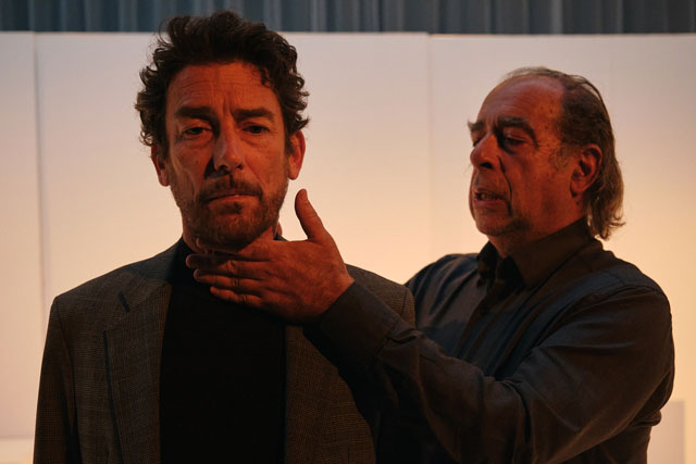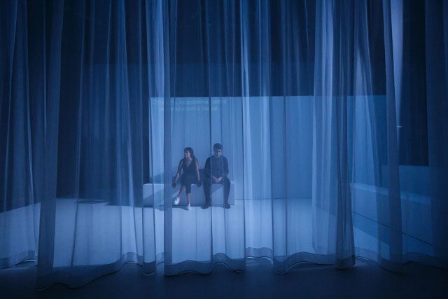 GG: Chegámos a um ponto em que duas pessoas podem viver a milhares de quilómetros de distância e ainda assim escrever uma peça juntos. O Cédric estava em Paris e eu estava em Lisboa ou Viseu — divido-me entre as duas cidades. Fomos trocando correspondência por e-mail, trocando ideias. Liamos as coisas um do outro e respondíamos de seguida, este foi o modos operandi — que na verdade, para mim, não é suficiente para escrever uma peça. As residências artísticas foram fundamentais para o processo da escrita. Deram-se em Viseu — onde tenho o projecto Creta — em Lisboa, em Montemor-o-Novo no Espaço do Tempo, e em Paris. Foram residências de escrita, de abordagem ao texto. O encontro foi e é fundamental para a criação — costumo dizer que não é por acaso que um grupo de teatro se chama companhia! O teatro faz-se em companhia, na companhia uns dos outros. O processo foi muito intuitivo, não foi estudado à partida. Fomos descobrindo à medida que escrevíamos. Houve uma coisa que achei muito curiosa: eu escrevo em português e o Cédric escreve em francês. Às vezes conversamos em inglês, para nos entendermos, o meu francês não é bom e o português do Cédric é inexistente (risos). Os textos têm que ser lidos na língua que vão ser falados, e por isso tivemos mais do que uma tradutora connosco a fazer o trabalho de tradução. Durante esse trabalho, fui percebendo muita coisa sobre escrita! De repente, lês qualquer coisa tua traduzida e dizes: isto não foi o que eu escrevi! E não é que a tradução seja má, o facto é que a tua ideia não era muito clara à partida. Começas a perceber pequenas subtilezas na própria escrita, que neste caso, é a tradução de uma língua para uma outra. O teatro é um exercício de tradução, traduz-se da página para o espaço. Estes problemas de tradução deram-me uma outra perspectiva sobre a escrita e a dramaturgia.