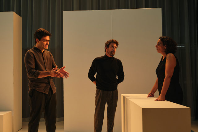 Guilherme Gomes: A ausência de resposta tem várias dimensões. Há uma que elogio bastante e que procuro muitas vezes praticar na minha vida: uma espécie de elogio ao enigma. Nas alturas em que nos damos conta de que há coisas sobre as quais não temos reposta. Por vezes a resposta é precisamente o silêncio, ou a passagem do tempo… Por exemplo: se olhares o pôr do sol ou se estiveres a despedir-te de alguém muito importante, não há palavras. No espectáculo há momentos destes, momentos em que de repente o enigma ou o inominável são o protagonista da cena. Apesar de não serem momentos apaziguadores, de certa forma, transportam consigo uma espécie de tranquilidade. Não são momentos agitados, violentos, nem claramente hostis, são momentos de dúvida e de interrogação — uma espécie de interrogação tranquila. O silêncio associado ao discurso violento está também exposto na peça. Foi algo que fomos explorando à medida que íamos escrevendo sobre o silêncio: criando discurso ou colocando palavras no lugar da sua ausência. Escrever sobre o silêncio é logo à partida traí-lo. Durante a escrita íamos pensando muito sobre o poder das palavras: quem é que pode falar, em que circunstâncias se pode falar, que linguagem usamos… Reflectimos sobre o poder da fala e do silêncio. Por vezes o silêncio não é um gesto, nem qualquer coisa que resulta de uma opressão, mas é muitas vezes um gesto opressor, como por exemplo, não dar reposta a alguém, ou não dialogar com alguém. Dialogar com alguém é reconhecer o outro: só discutes com quem tens vontade de discutir.