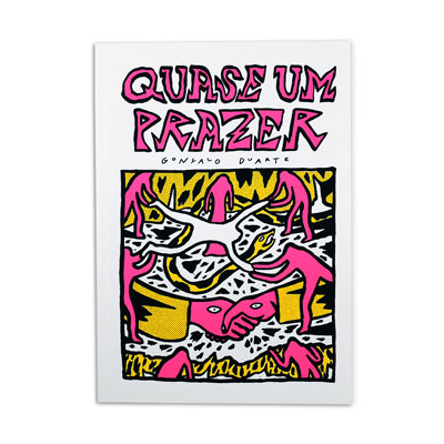 Quase Um Prazer, de Gonçalo Duarte, é um livro que reúne uma selecção de desenhos realizados no rescaldo da agitação pandémica e que ao longo do tempo foram acumulados em pilhas. Desenhados originalmente a acrílico são atravessados por perigos e ruínas dos quais podemos depreender episódios breves de uma funesta visão sobre o mundo.